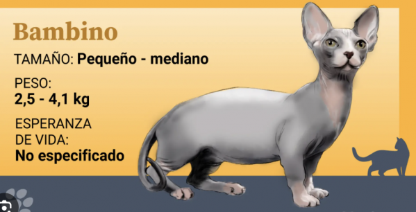 Hay gatos llamados Bambino. Se trata de una raza de gato que se creó apenas en el año 2005, “como un cruce entre las razas Sphynx y Munchkin.
